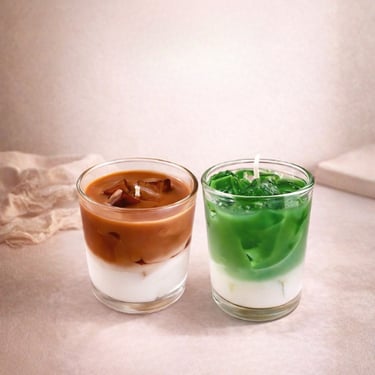 Design your own iced latte–inspired candle by selecting your favorite color dye: matcha green, strawberry pink, or taro purple.