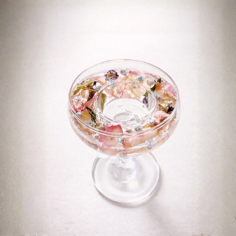 Create a tealight candle holder using real preserved flowers, handmade with 2 free tealights included.
